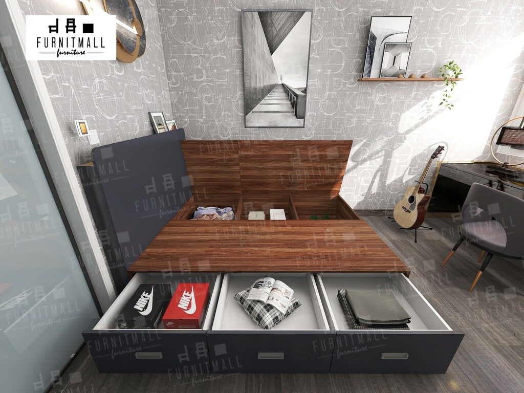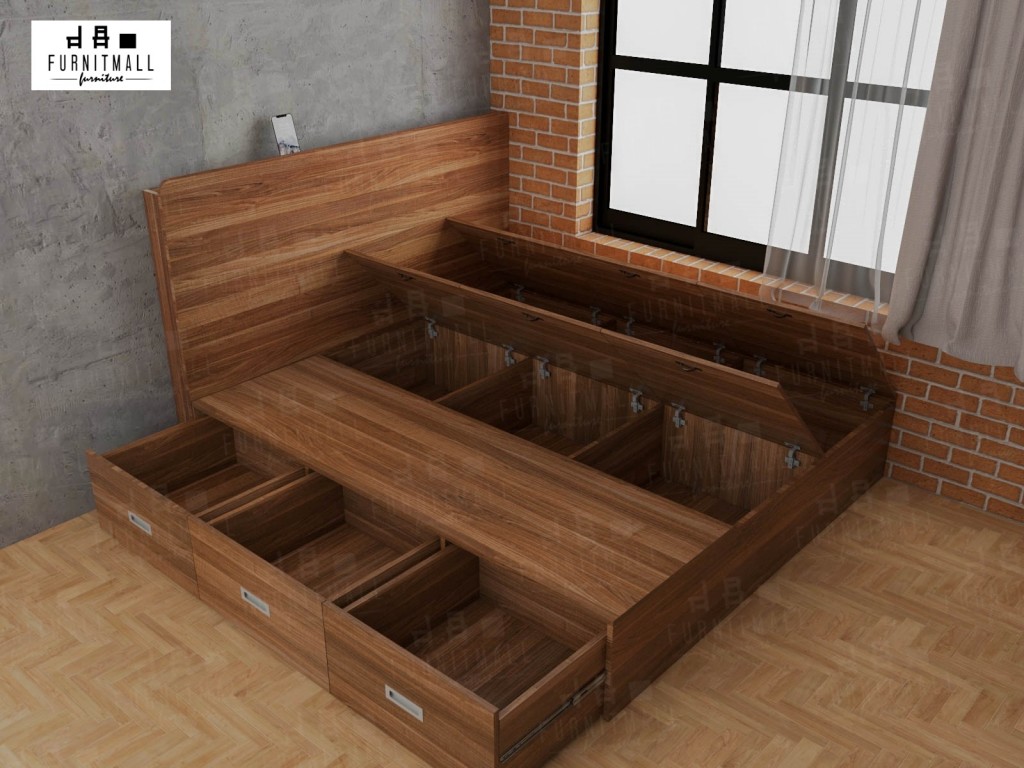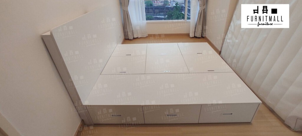 การใช้งาน: เตียง 5 ฟุต ใส่ของได้เยอะมาก ฝาปิดหนักมาก ลิ้นชักใช้งานได้ดี