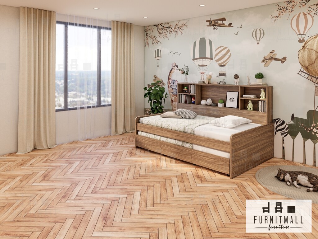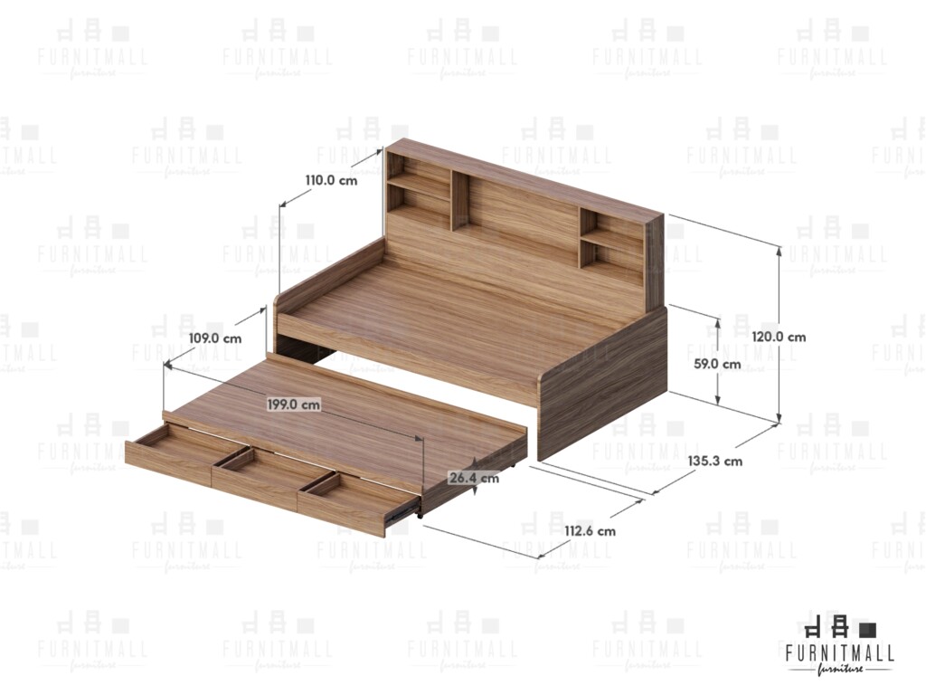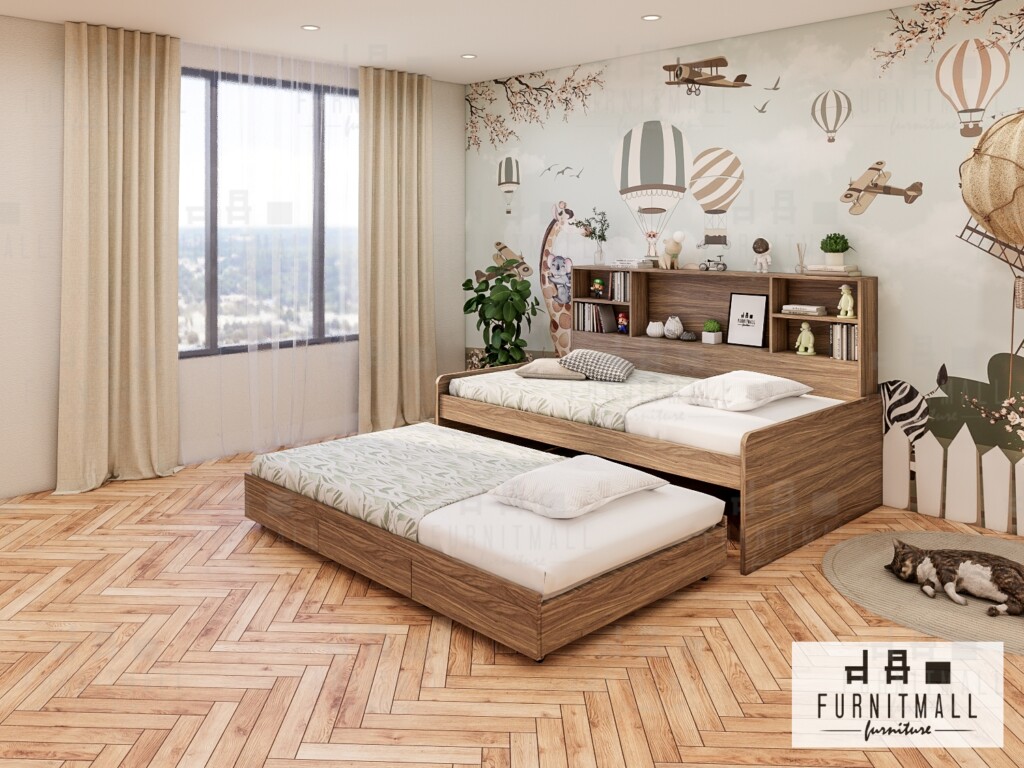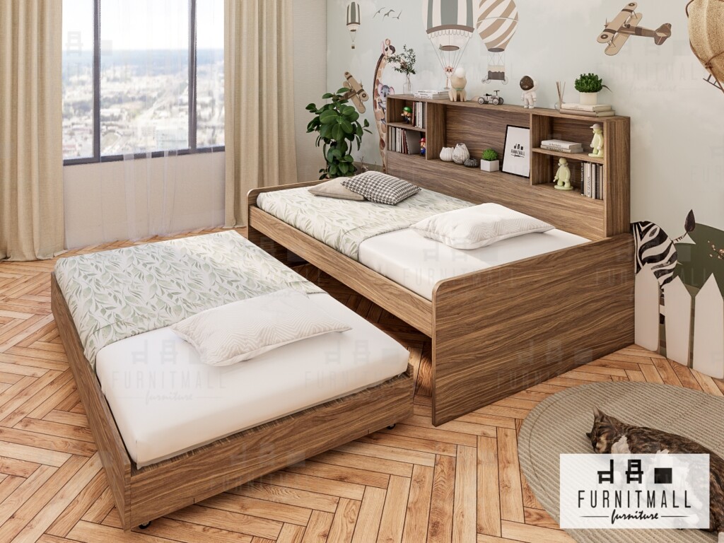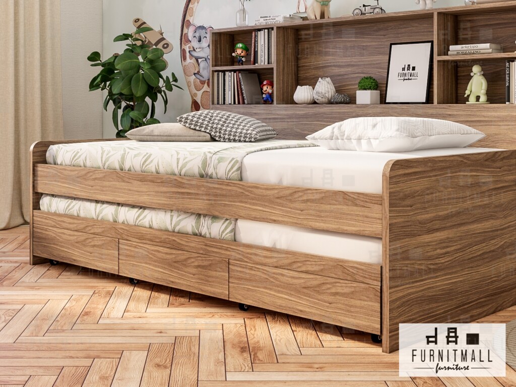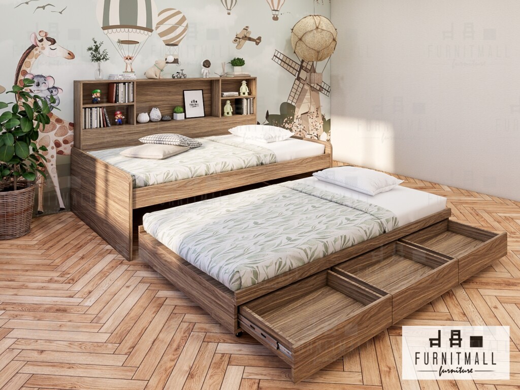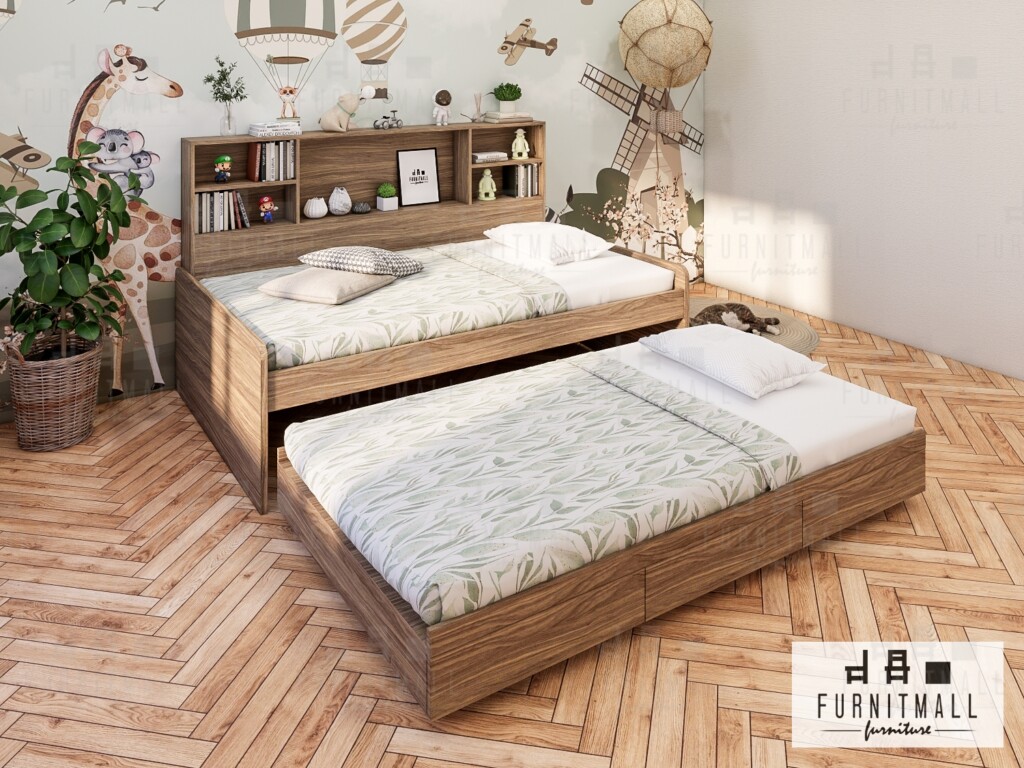 เตียงถาดสไลด์พร้อมตู้ข้างเตียง 3.5 ฟุต