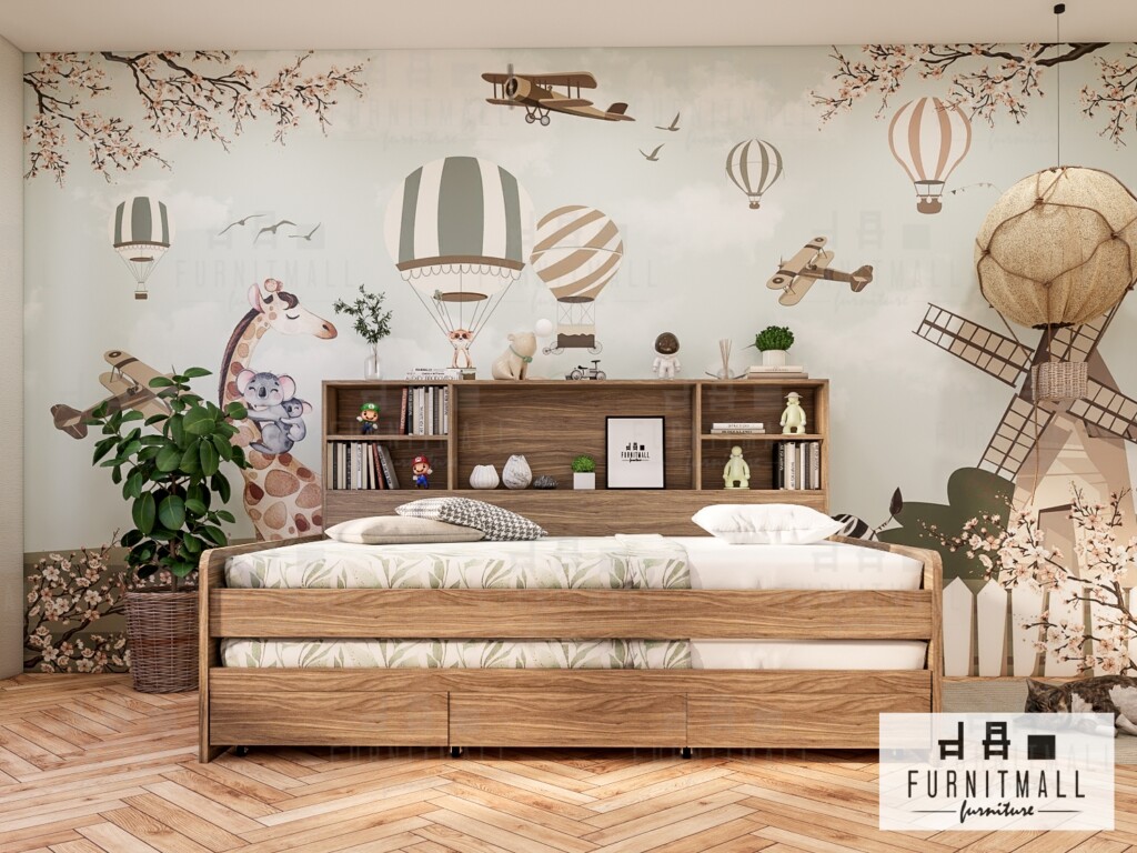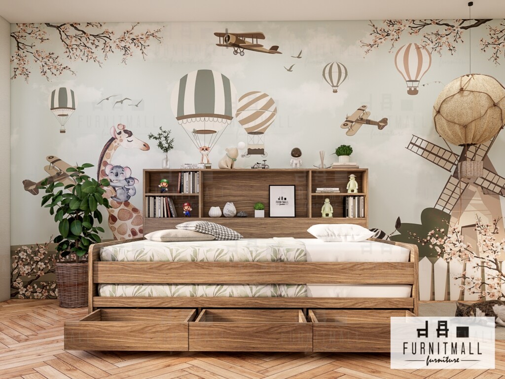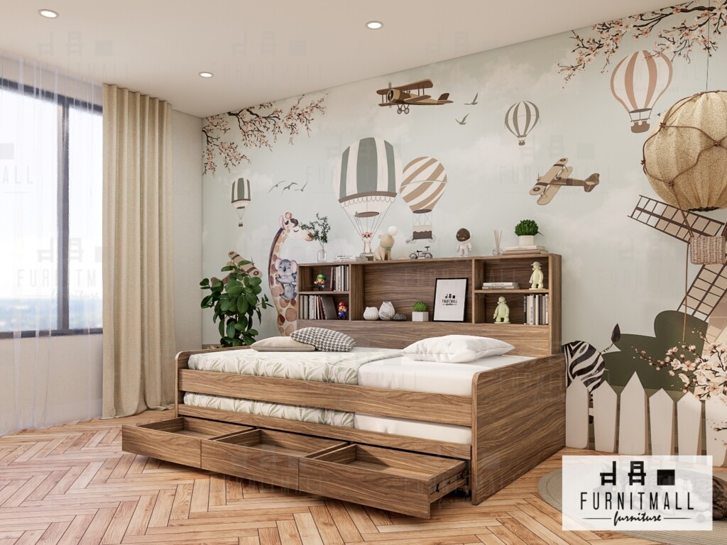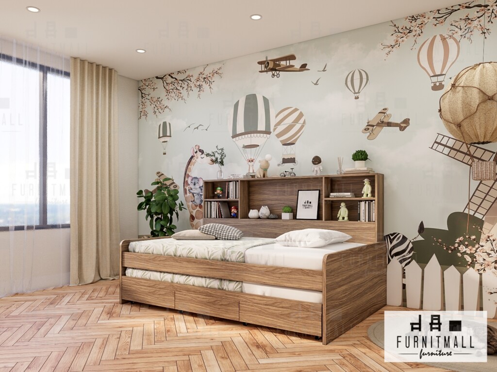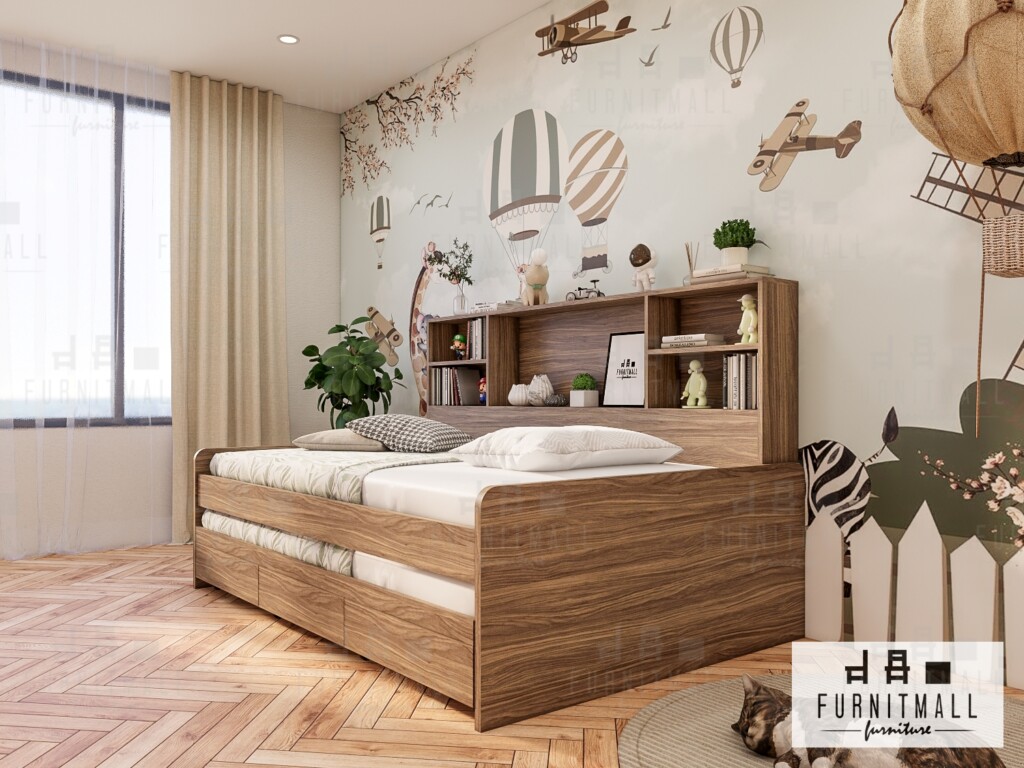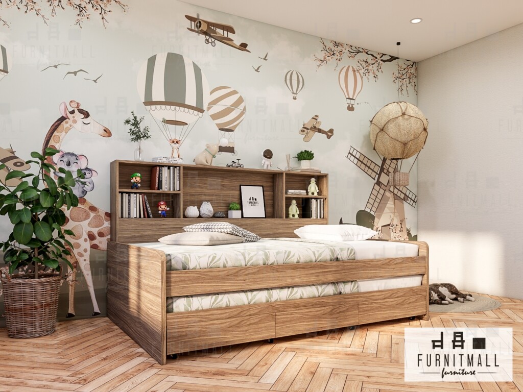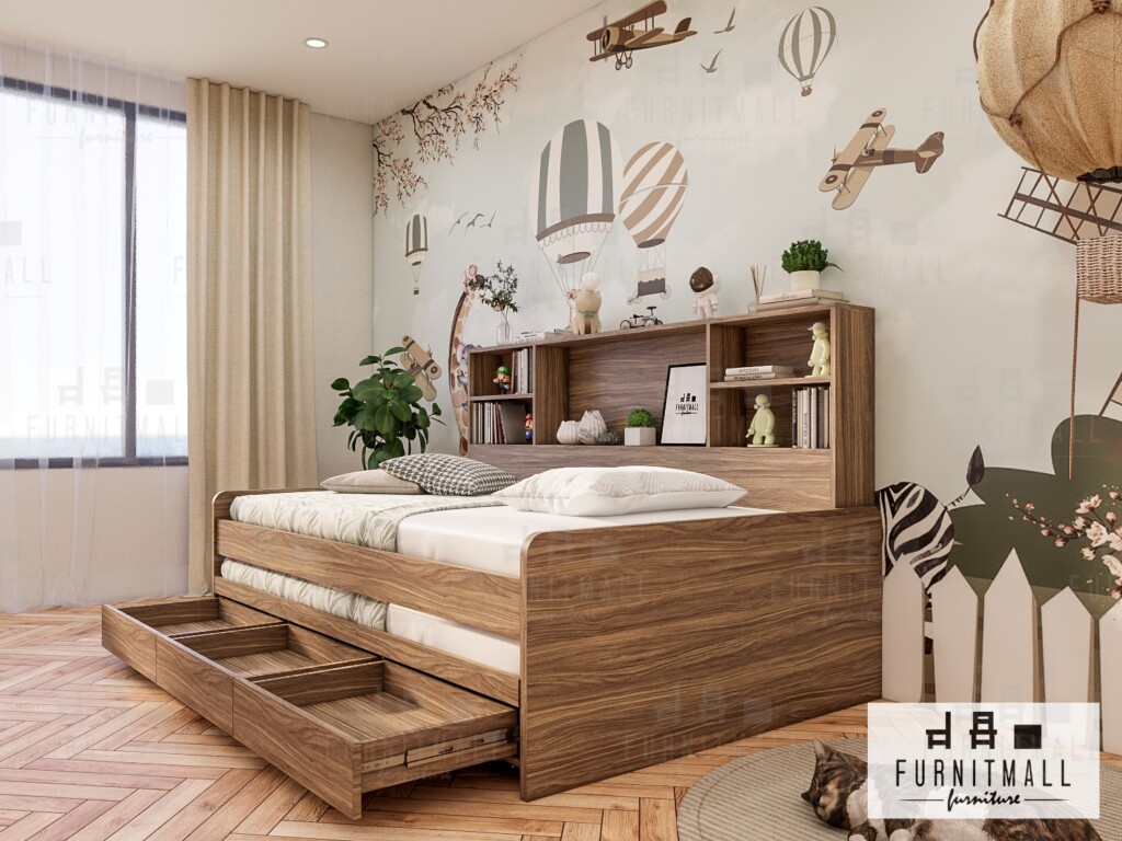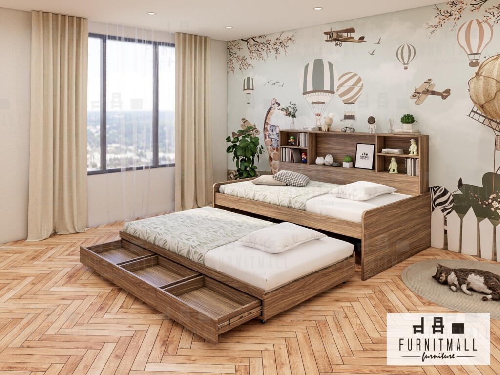 เตียงถาดสไลด์พร้อมตู้ข้างเตียง 3.5 ฟุต