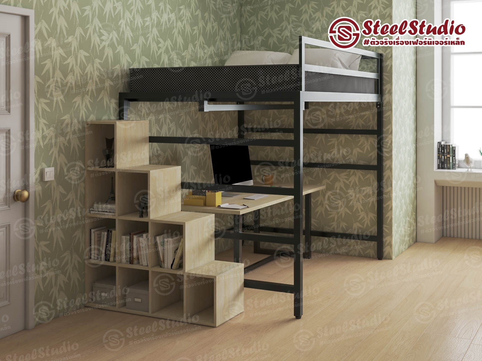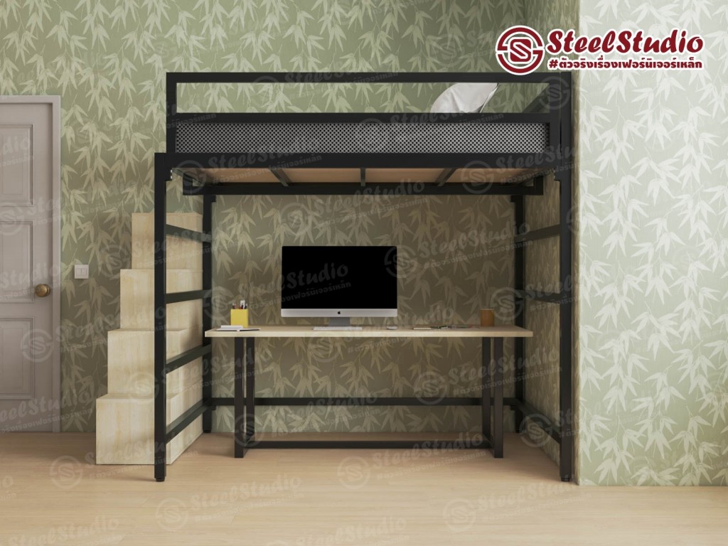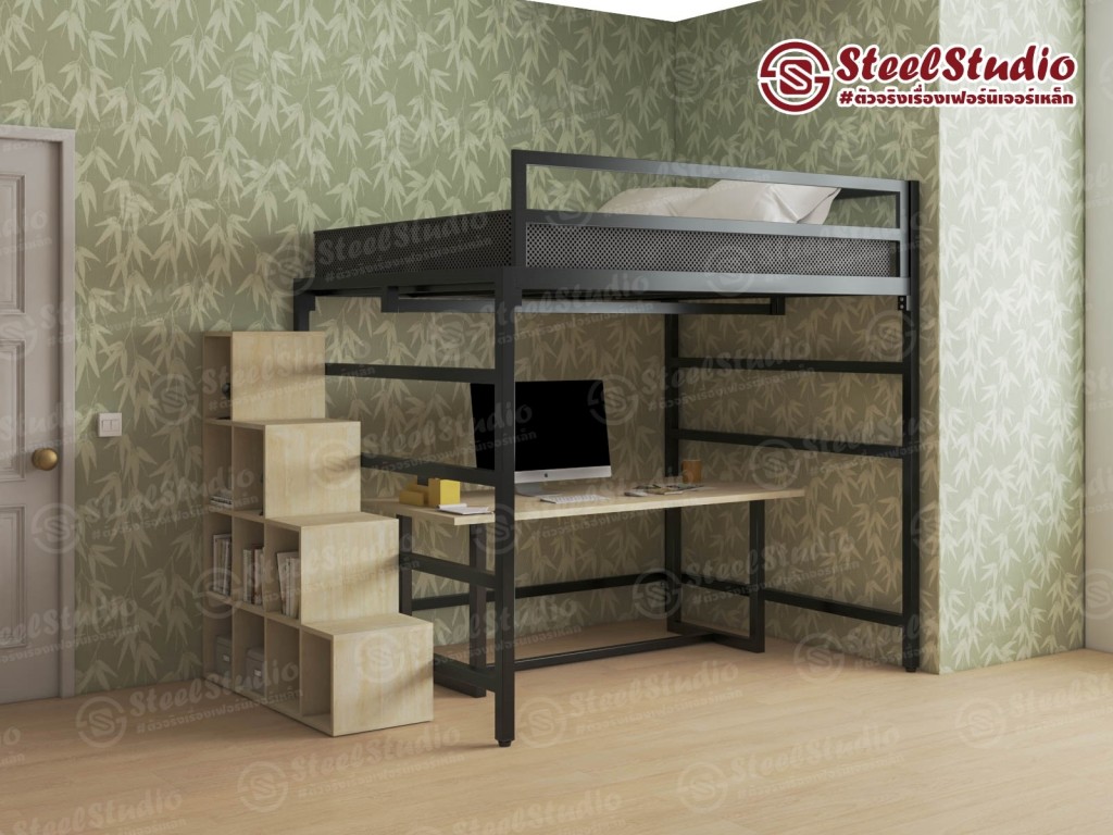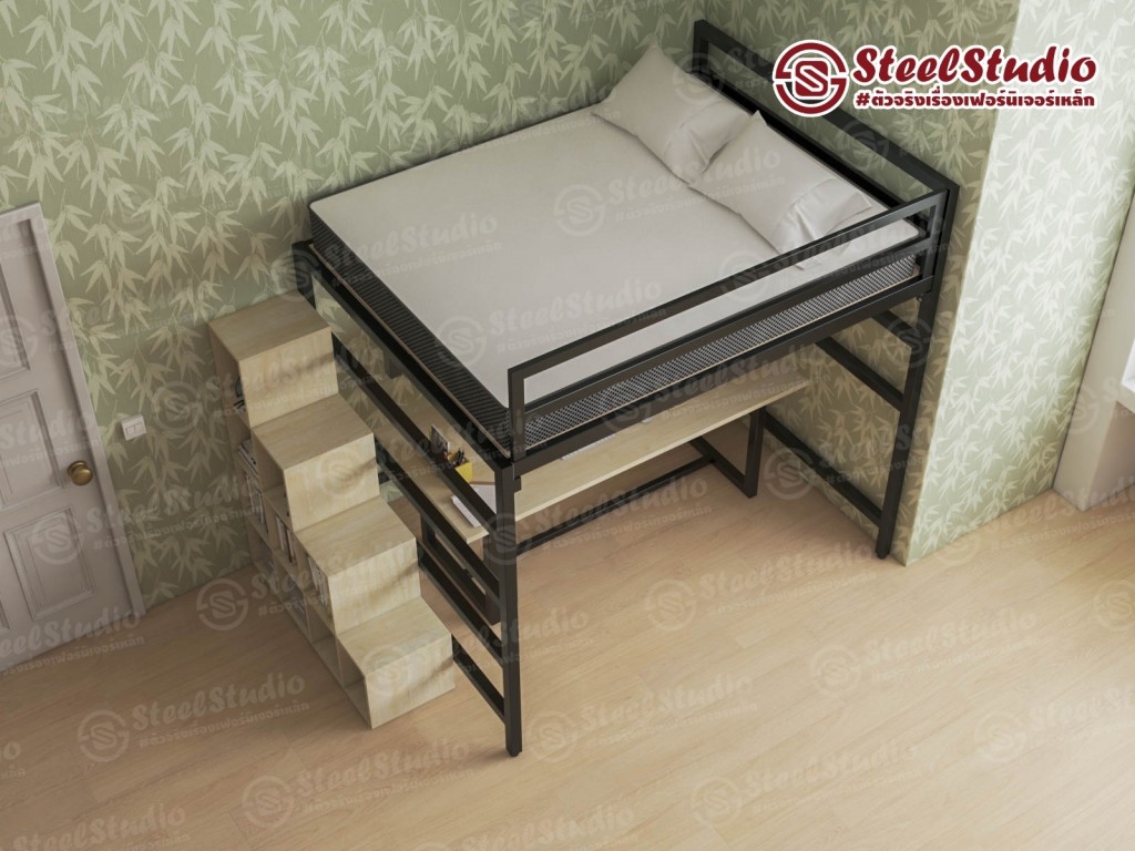 เตียงล่างโล่ง ขนาด 5 ฟุต พร้อมกล่องบันไดเปิดข้างแบบสั้น
