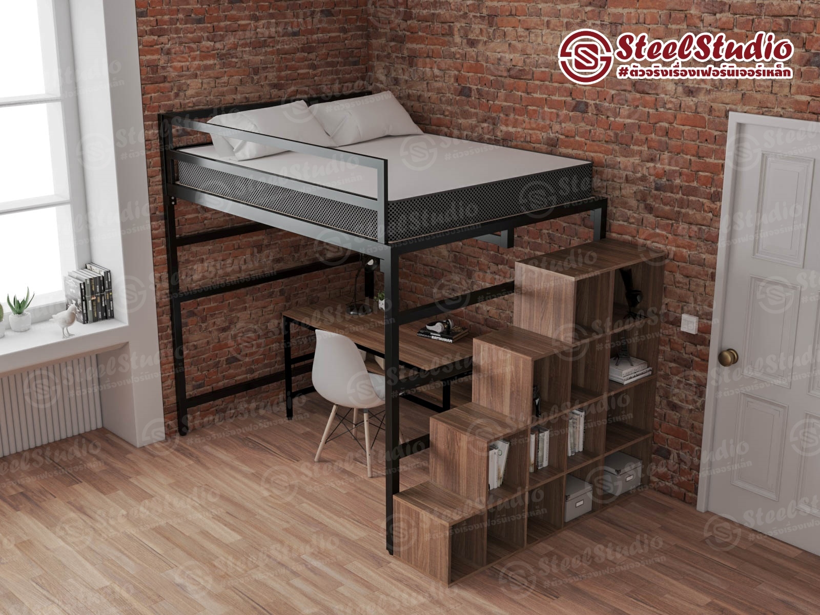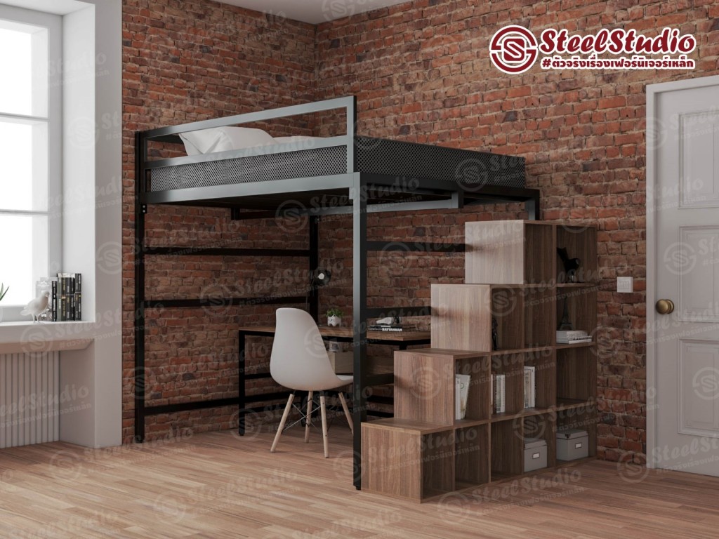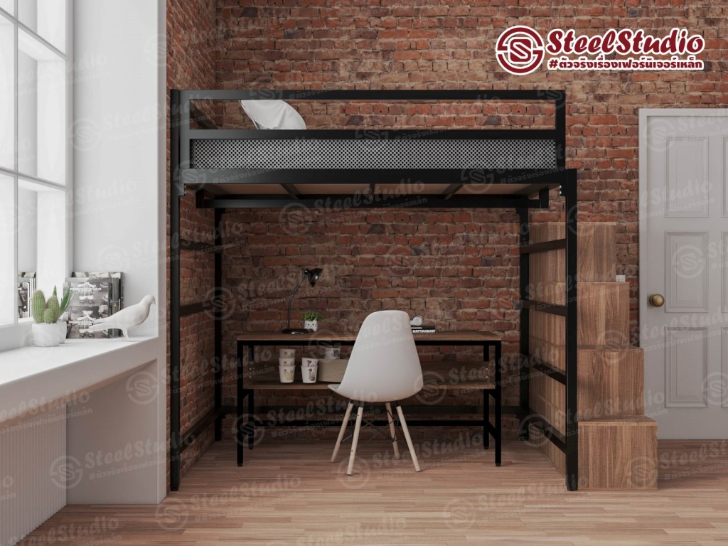 เตียงล่างโล่ง 5 ฟุต พร้อมกล่องบันไดเปิดข้าง