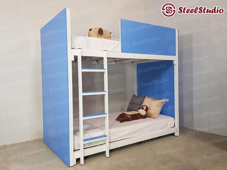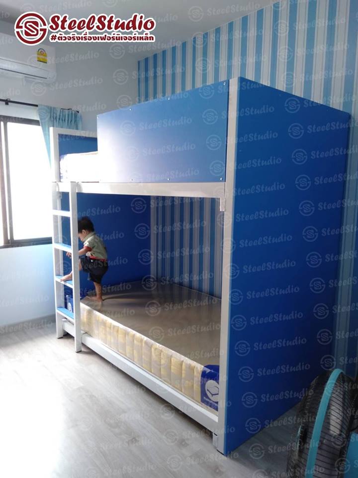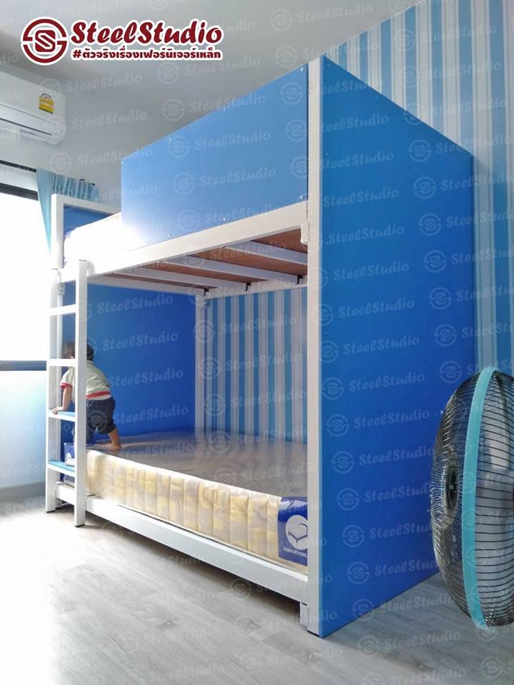 เตียงสองชั้น ปิดไม้เมลามีนสีน้ำเงิน
