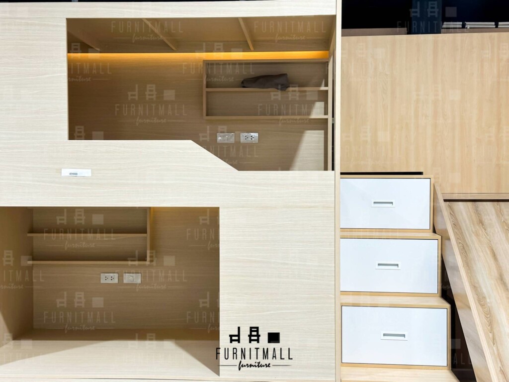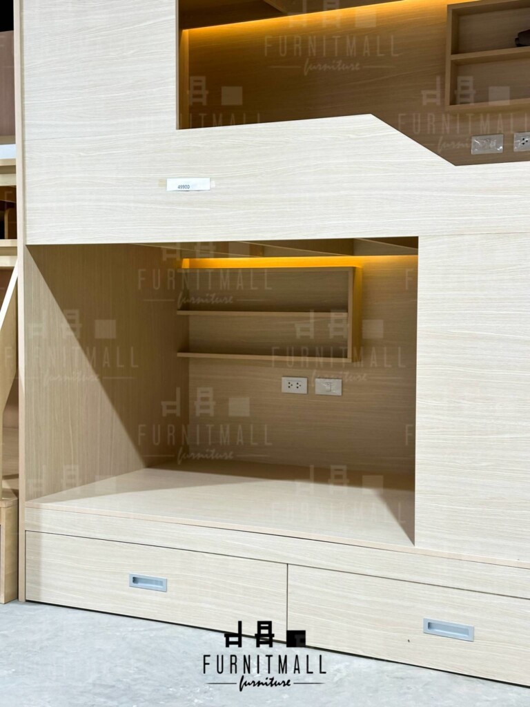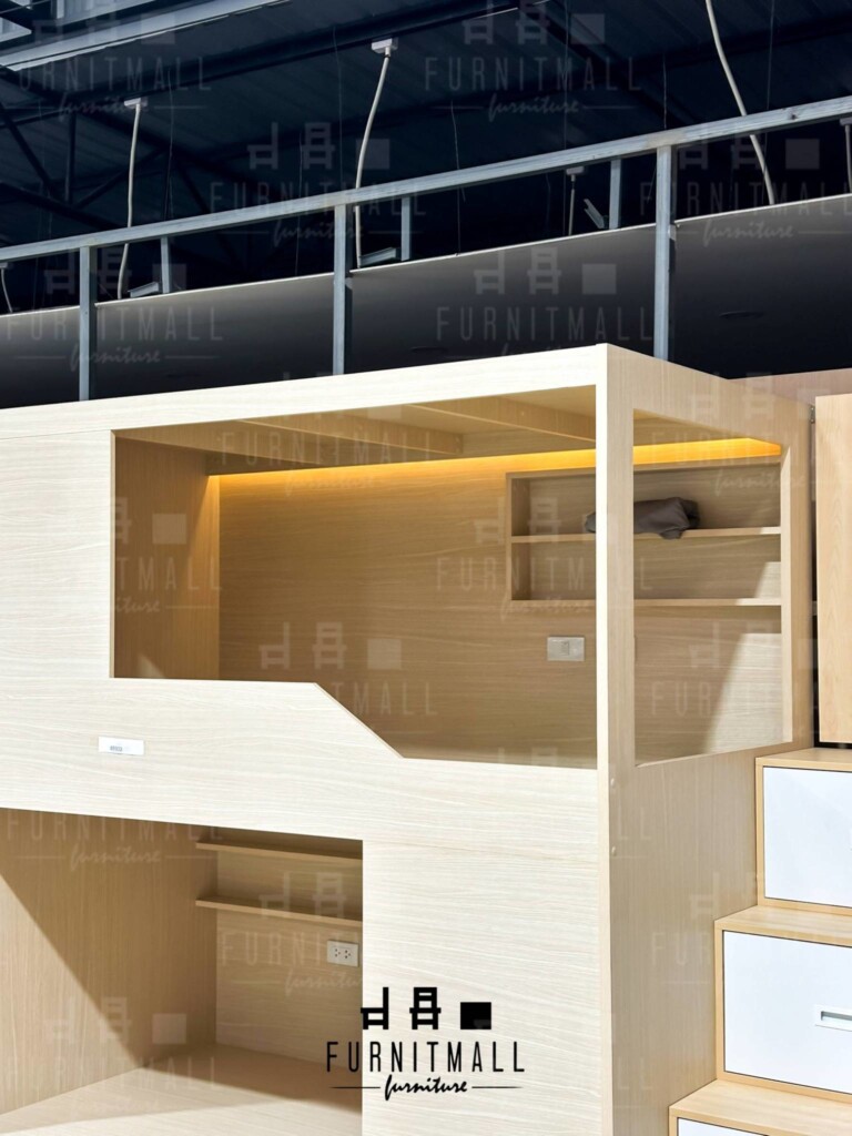 เตียงสองชั้น เตียงโฮสเทล เตียงเด็ก พร้อมกล่องบันไดและสไลเดอร์