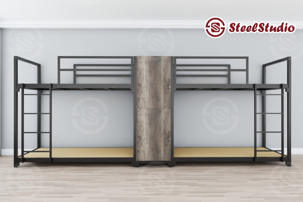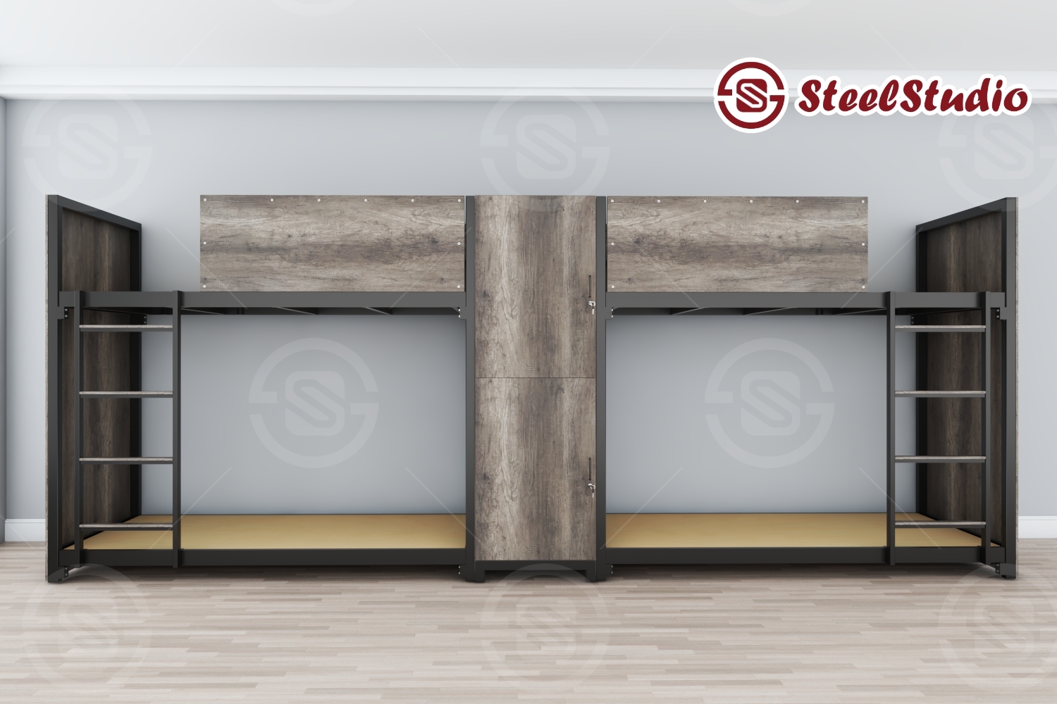 เตียงสองชั้น 2 ชุด พร้อมตู้ล็อกเกอร์คั่นเตียงโฮสเทล