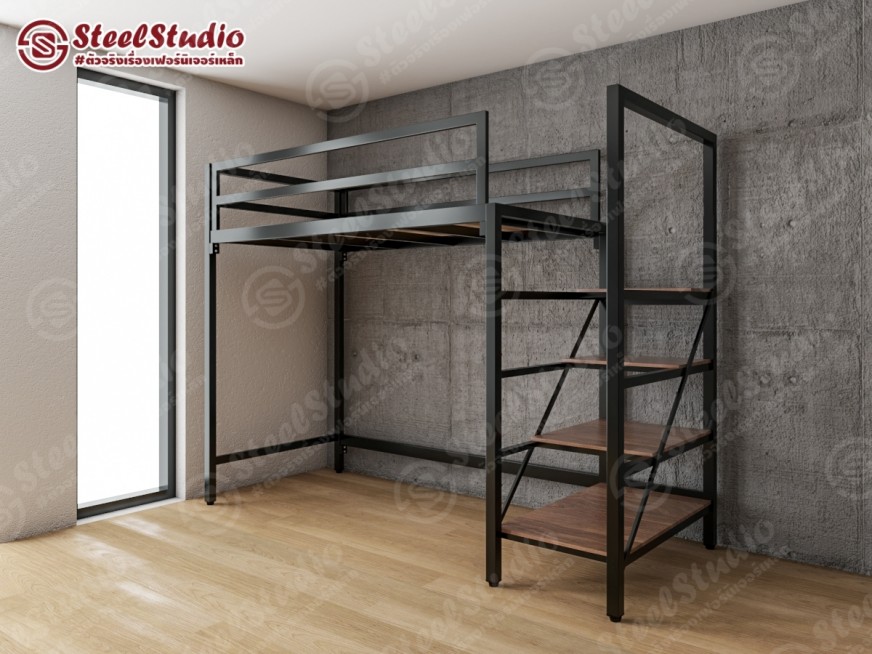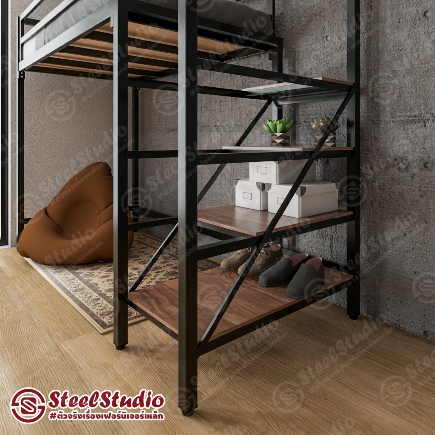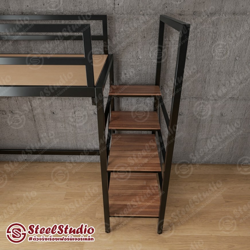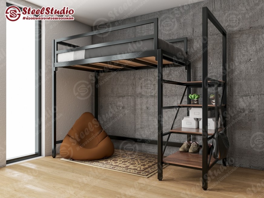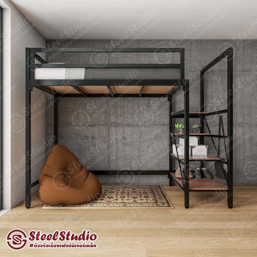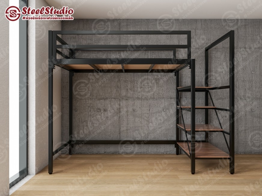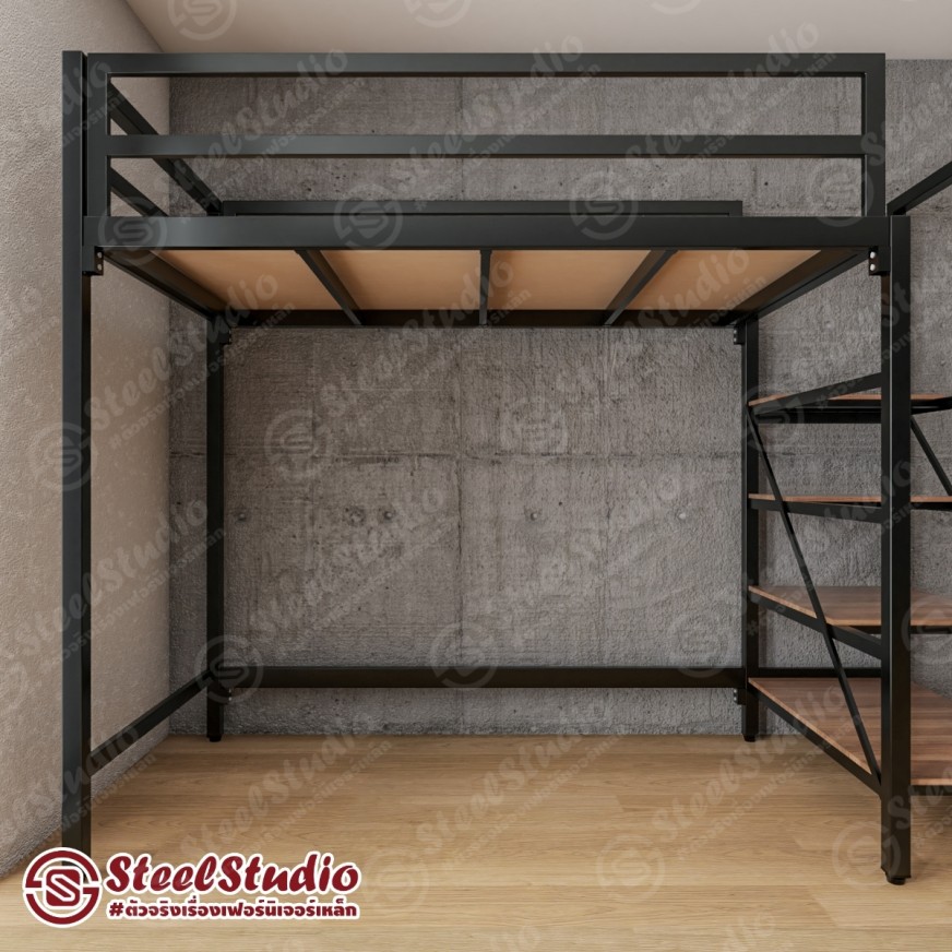 เตียงสูง เตียงล่างโล่ง บันไดเหล็ก ไม้บันไดยาว วางของได้