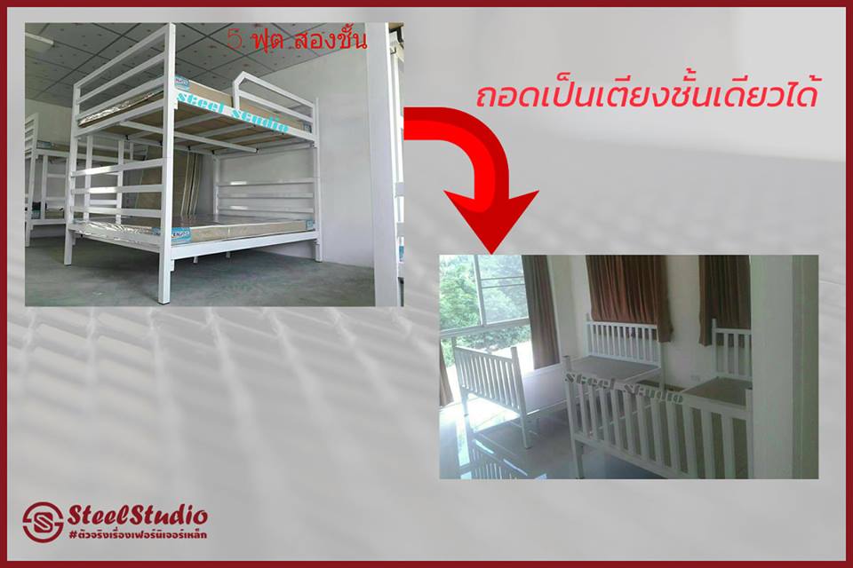 เตียงเหล็กสองชั้น ขนาด 5 ฟุต ถอดแยกได้